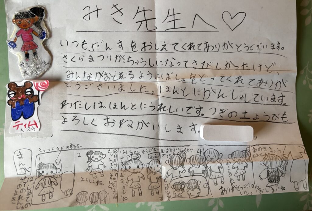 終了後に、レッスン生の1人からお手紙をもらいました(o^^o)